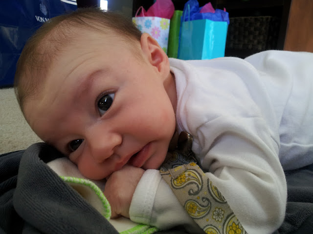 I am positive we have what you would call an "easy" baby. She is so sweet, still so sleepy, and isn't fussy all that often. We have had our few times when she will be fussy with others and it seems like only mommy or daddy have the magic touch. Hopefully she'll become more comfortable with others soon, but it is nice to know that we are comforting to her! We are so blessed and appreciative to have such loving grandparents and aunts for her and that they all live so close. She's spent a few nights (not overnight) this month at grandparents houses during a wedding, a date night out for Corey's birthday, and another few hours out for mom and dad to celebrate another friend's birthday.